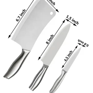 Combo Of 3 Stainless Steel Kitchen Knife | Cleaver, Chef & Paring Knife | Ultra-sharp blades | Scratch Resistant and Rust Proof | Non-Slip Handle for Chopping, Slicing & Meat Cutting Perfect for Home Kitchen ( Silver | Pack Of 3 )